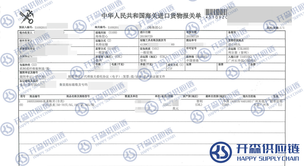 【本文結語】 上述就是智利冷凍貽貝進口清關報關代理服務【經典案例】的全部內容,希望能對您有所幫助,如有水產品進口報關上任何疑問及問題可隨時在線聯系我們或撥打 18002611553,開森供應鏈擁有豐富的水產品進口報關操作經驗及案例,10余年進口經驗為您所用,各類進口疑難都能為您一一解答及協助快速處理解決!