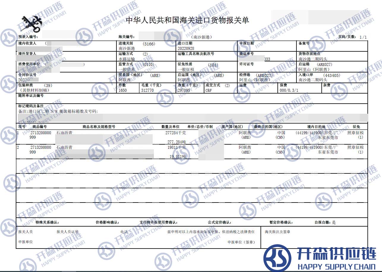 【本文結語】 上述就是廣州港石油瀝青進口報關清關代理服務【經典案例】的全部內容,希望能對您有所幫助,如有瀝青進口報關上任何疑問及問題可隨時在線聯系我們或撥打 18002611553,開森供應鏈擁有豐富的瀝青進口報關操作經驗及案例,10余年進口經驗為您所用,各類進口疑難都能為您一一解答及協助快速處理解決!