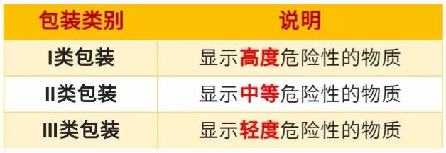 按照危險(xiǎn)程度,對(duì)第1類、第2類、第7類、第5類的5、2項(xiàng)、第6類的6、2項(xiàng)以及第4類的4、1項(xiàng)自反應(yīng)物質(zhì)以外的其他各類危險(xiǎn)貨物,可劃分為I類、II類、III類三個(gè)包裝類別: