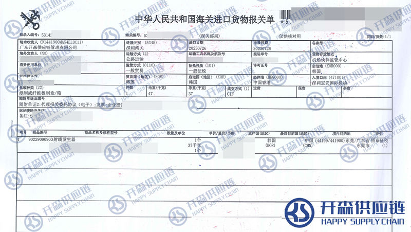 【本文結語】 上述就是深圳機場韓國X射線設備進口報關代理服務【清關案例】的全部內(nèi)容,希望能對您有所幫助,如有機械進口報關上任何疑問及問題可隨時在線聯(lián)系我們或撥打 18002611553,開森供應鏈擁有豐富的機械進口報關操作經(jīng)驗及案例,10余年進口經(jīng)驗為您所用,各類進口疑難都能為您一一解答及協(xié)助快速處理解決!