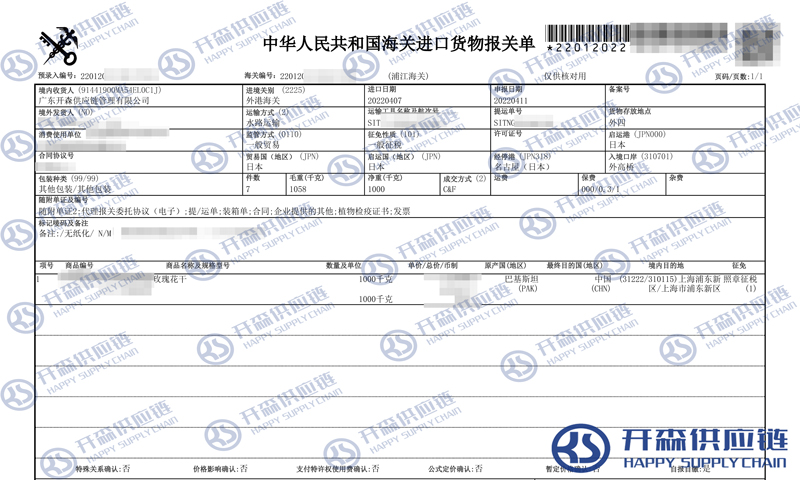 【導讀】您正在閱讀的是關于日本玫瑰花干進口報關清關代理服務【經典案例】的內容,本文由開森普貨進口報關案例代理小編整理編寫;