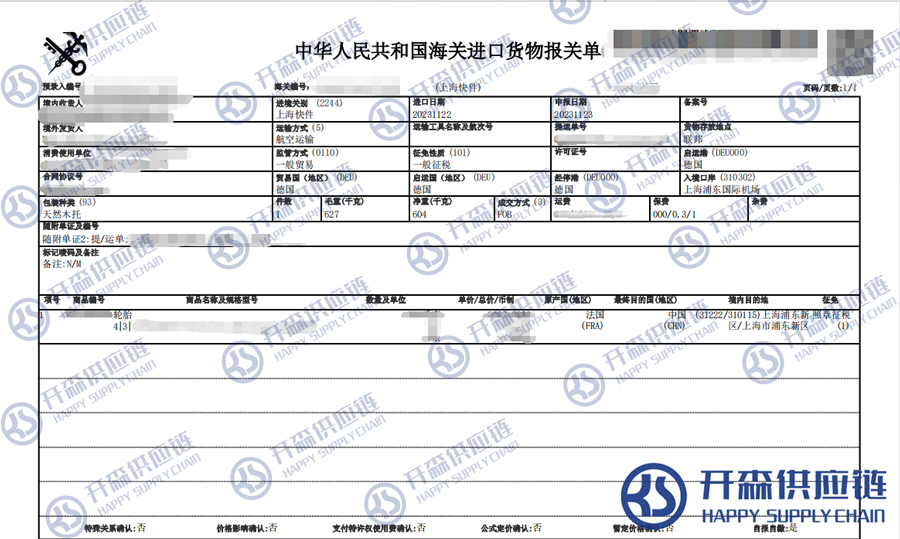 【本文結語】 上述就是上海機場德國汽車輪胎進口報關代理服務【清關案例】的全部內容,希望能對您有所幫助,如有汽車配件進口報關上任何疑問及問題可隨時在線聯系我們或撥打 18002611553,開森供應鏈擁有豐富的汽車配件進口報關操作經驗及案例,10余年進口經驗為您所用,各類進口疑難都能為您一一解答及協助快速處理解決!